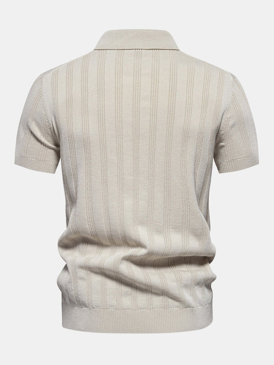 Stripe Knit Zip Up Polo Shirt